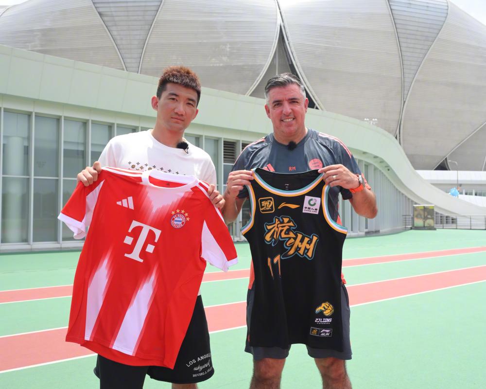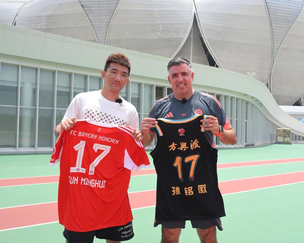 北京时间7月11日,拜仁世界队来到了杭州,和浙江广厦男篮球员孙铭徽进行了交流互动,双方也互赠了球衣。