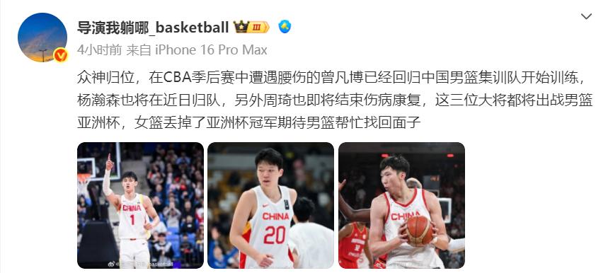 为了确保万无一失,根据知情人士透露,男篮已经连夜召回了周琦、曾凡博以及杨瀚森三大猛将。因为伤病以及征战NBA缘故,这三人都曾短暂离开过国家队。目前,曾凡博已经成功归队,杨瀚森也将在近日启程回来。而周琦在眼睛康复后,也会火速回归。这三人都将代表中国队出战亚洲杯。三大实力派球员回归,对于中国队而言,确实是如虎添翼。