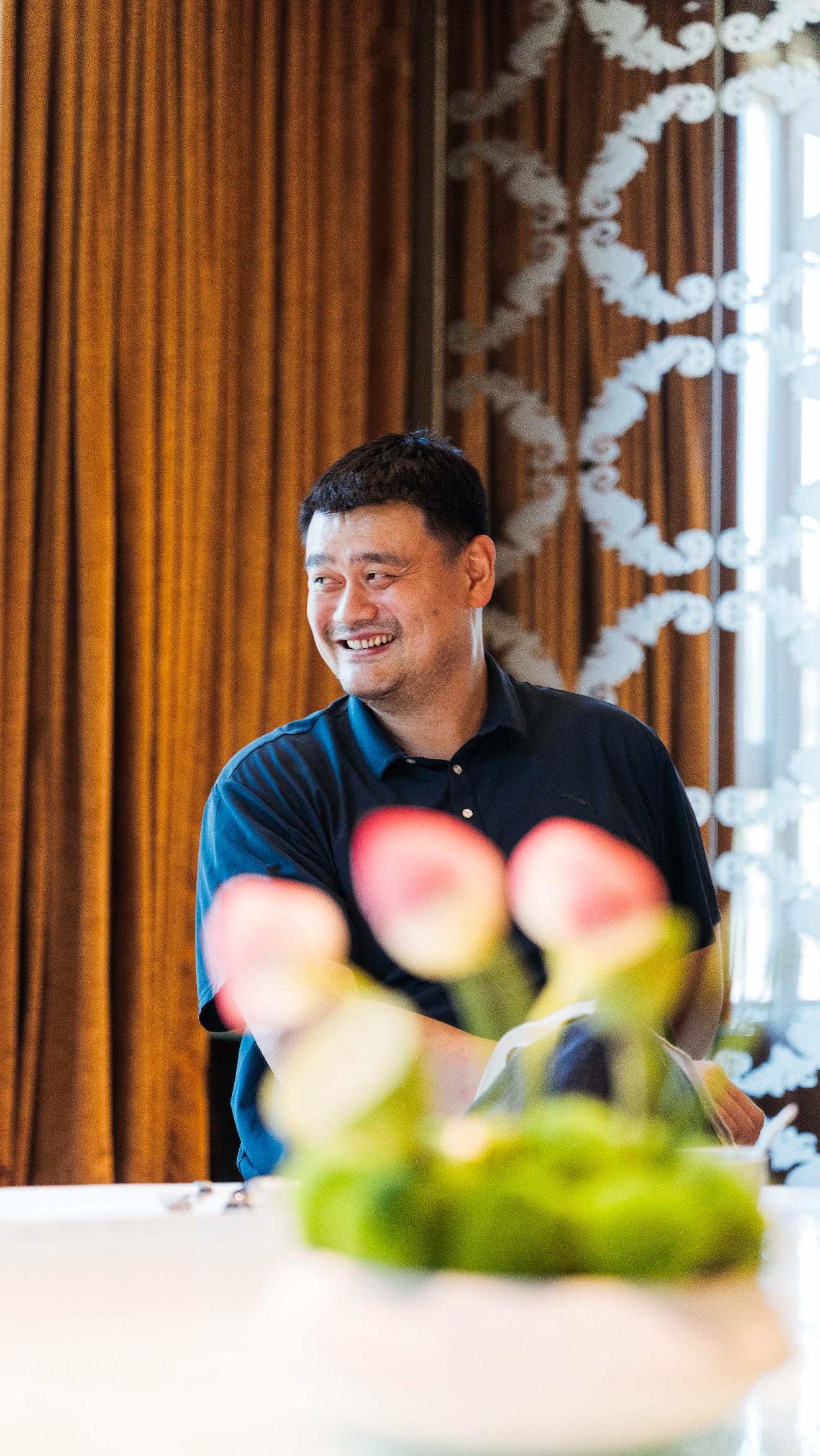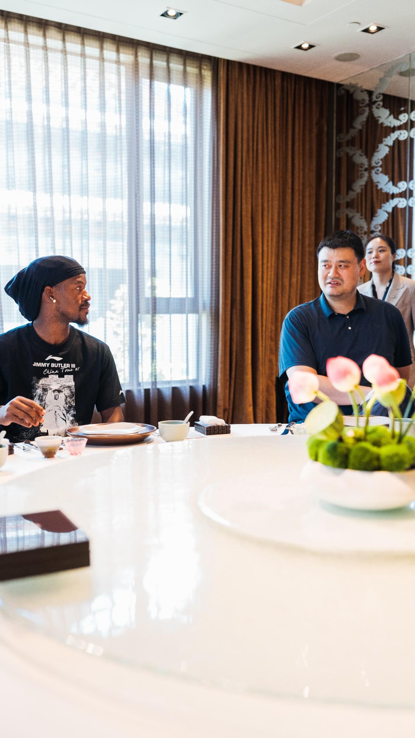 在合影中能看到,身高2.01米的巴特勒站在姚明身旁显得格外“娇小”。