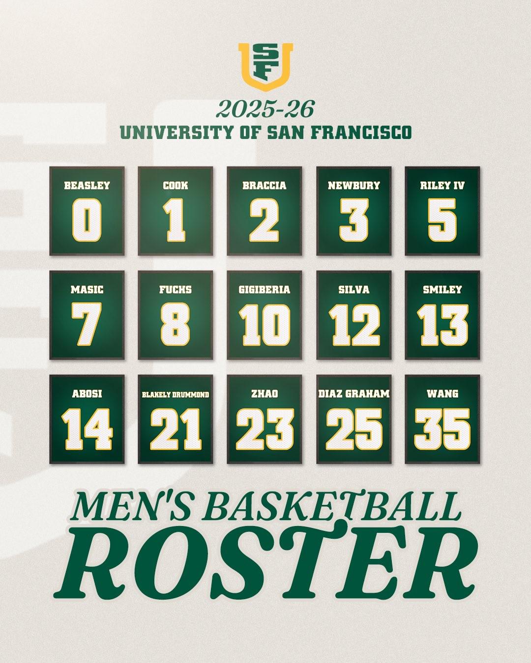 北京时间9月4日,旧金山大学男子篮球队公布了NCAA新赛季的球员名单。