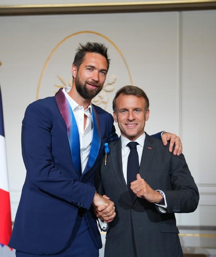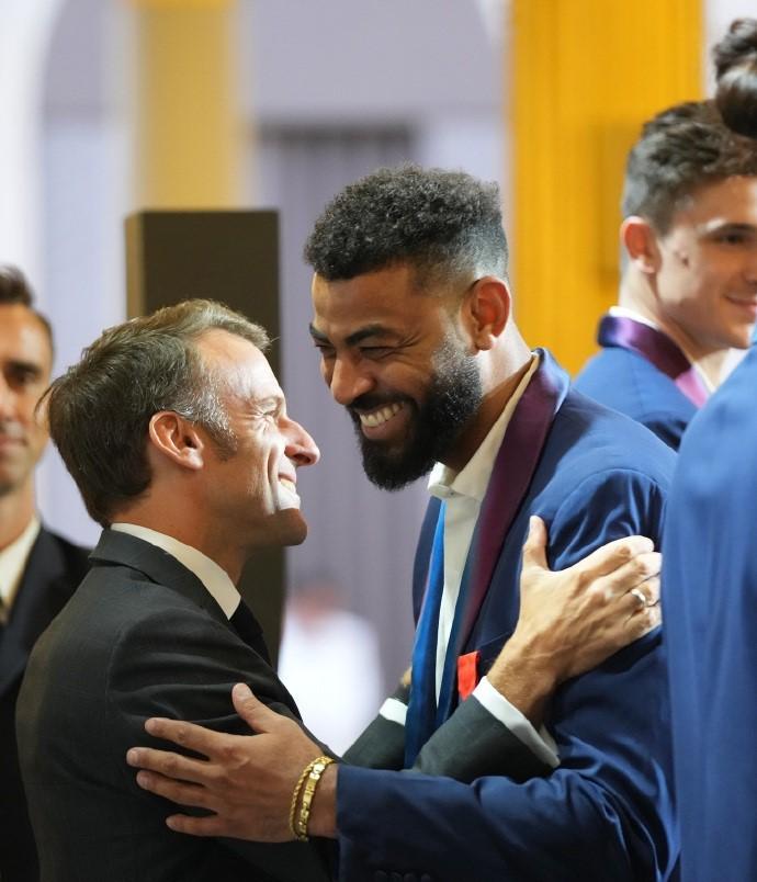 据法国媒体报道,7月7日是第一个世界排球日,法国总统马克龙在爱丽舍宫为蝉联奥运金牌的法国男排球员授勋。