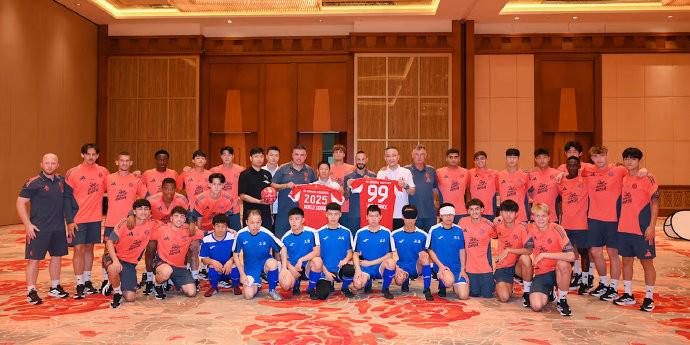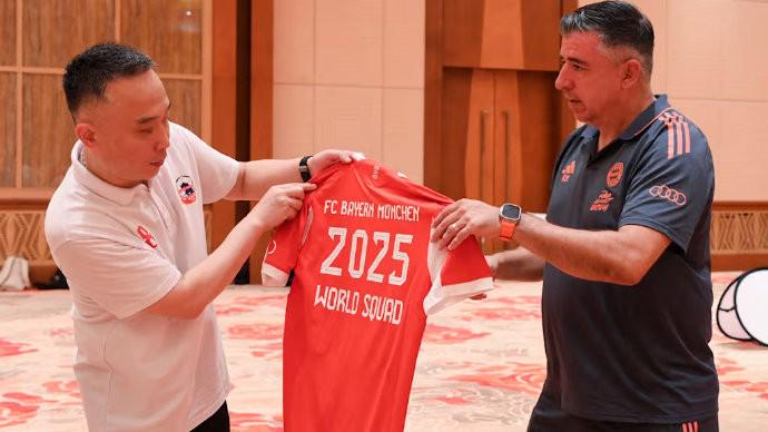 当地时间本周四,拜仁世界队与上海盲人足球队 了交流训练,互赠了球衣并且进行了互动。。