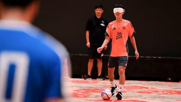 随后,小将们戴上眼罩亲身体验,仅依靠队友与教练的声音完成配合与移动,这不仅是一场特别训练,更是一堂信任与感知的足球课。