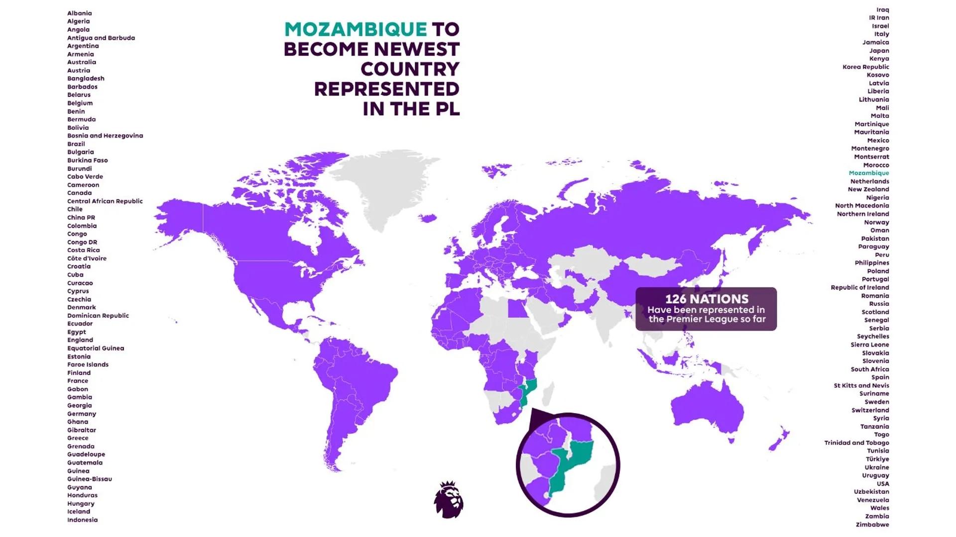 北京时间7月12日,桑德兰官宣签下莫桑比克左后卫雷尼尔多,使得莫桑比克成为第127个拥有英超球员的国家/地区。