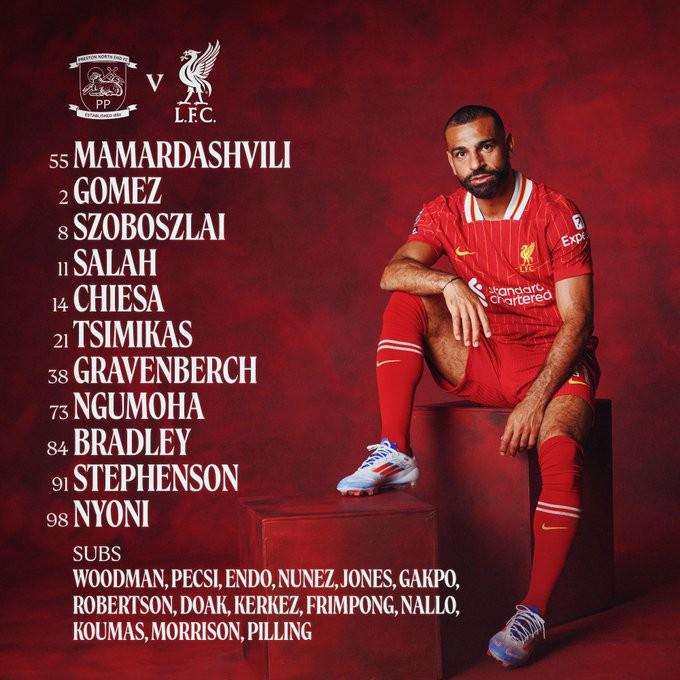 利物浦客战普雷斯顿:萨拉赫、基耶萨首发,维尔茨缺席