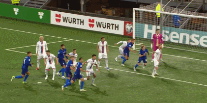 第12分钟,托尼-弗鲁克抢点头槌,兰海于格救险