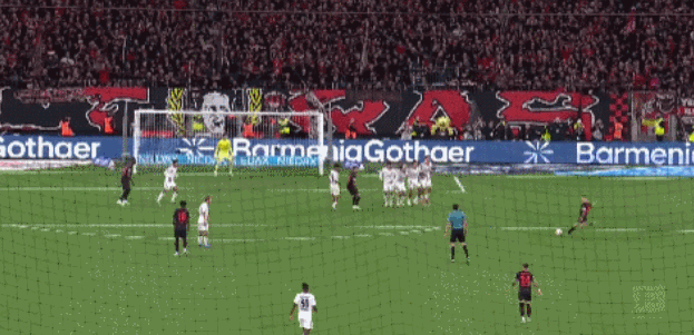 第90+8分钟,勒沃库森前场定位球机会,还是格里马尔多主罚,皮球依旧划过美妙弧线直坠网窝,门将原地目送,勒沃库森3-1锁定胜局