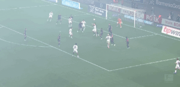 第52分钟,法兰克福右侧角球开到禁区,双方连续的头球争顶,乌尊得球侧身勾射入网,法兰克福1-2扳回一城