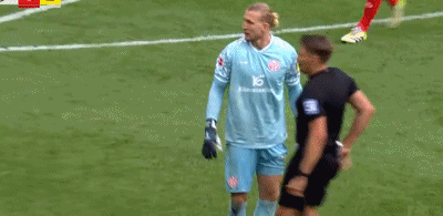 第68分钟,曾特纳出击放倒阿德耶米,主裁判直接出示红牌