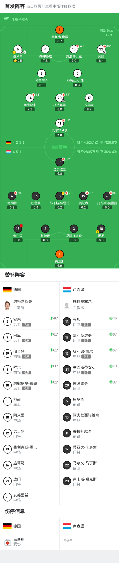 第51分钟,卢森堡后防犯错,基米希破门,德国4-0