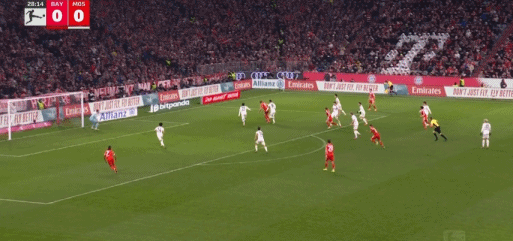 第29分钟,格纳布里送助攻,卡尔破门,拜仁1-0美因茨