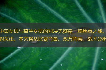 中国女排与荷兰女排的对决,是国际排坛的一场重要赛事。两支队伍在国际赛场上多次交锋,彼此之间有着深厚的竞争历史。此次比赛,中国女排作为东道主,肩负着主场作战的压力与期望。而荷兰女排则是一支实力强劲的欧洲劲旅,近年来在国际赛场上屡获佳绩,此次来华参赛,志在必得。