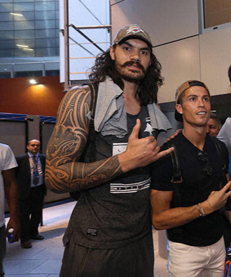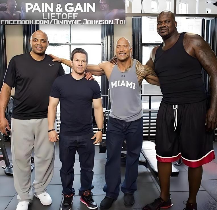 最后是奥尼尔,奥尼尔本来就是靠身体打球,反正没几个扛得住他碾压。2米16加上300多斤体重,奥尼尔因此成为公认合影“杀手”。这次遇到1米9的强森,别看平时强森在电影里一身腱子肉,在奥尼尔面前瘦弱的像细狗,真的是没对比就没伤害。