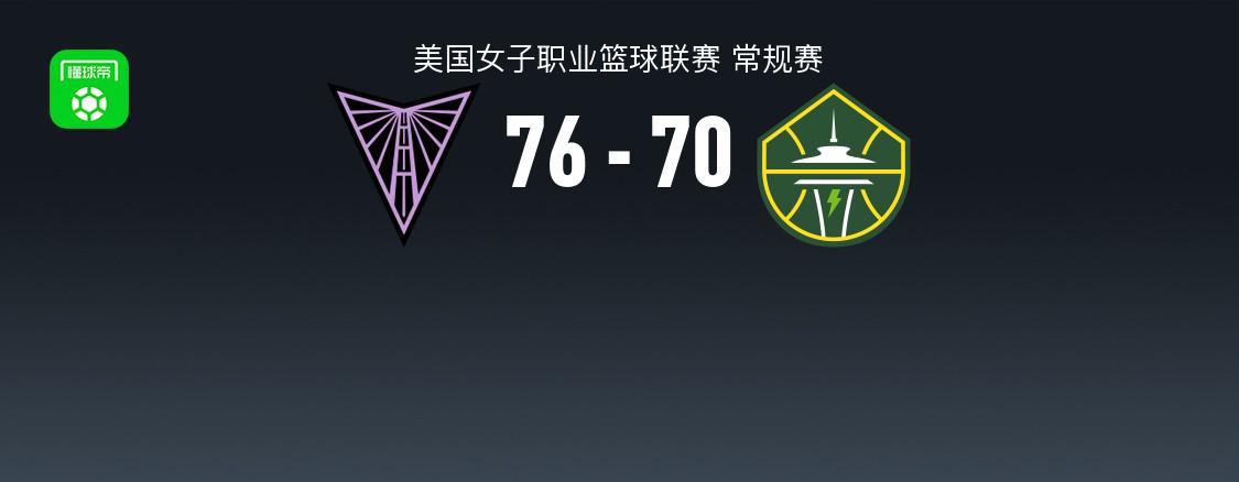北京时间6月15日美国女子职业篮球联赛 常规赛,金州女武神对阵西雅图风暴。半场金州女武神44-31风暴,最终金州女武神76-70风暴。金州女武神凯拉-桑顿22分12板1助,法格宾莉16分7板2助;西雅图风暴斯凯勒-狄金斯21分3助,A-克拉克11分3板1助。