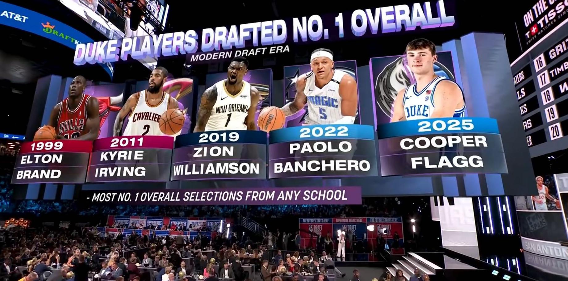 据统计,这是杜克大学历史上第6位被选中的状元秀,他们也成为了历史上贡献状元秀最多的NCAA大学篮球队。