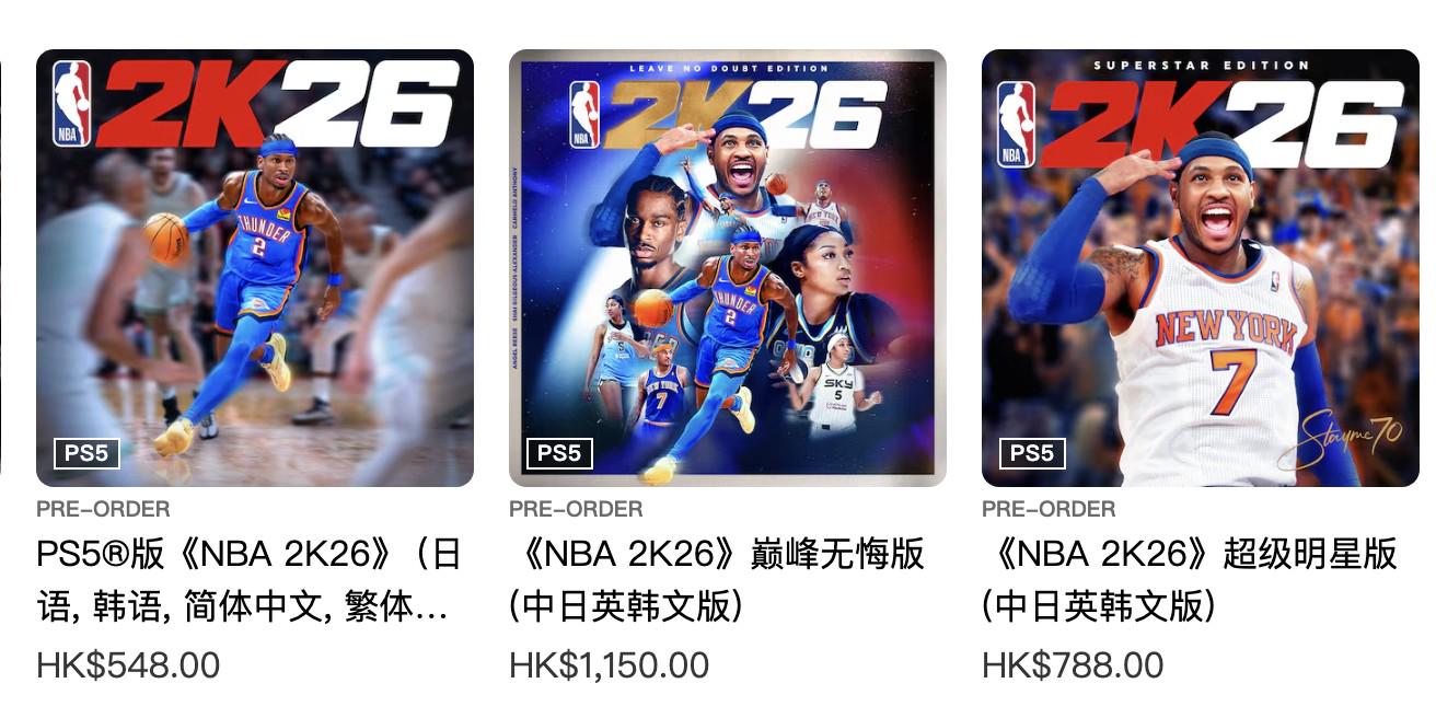 NBA2k26已经上架PS港服商城,其中最贵版本为1050元。