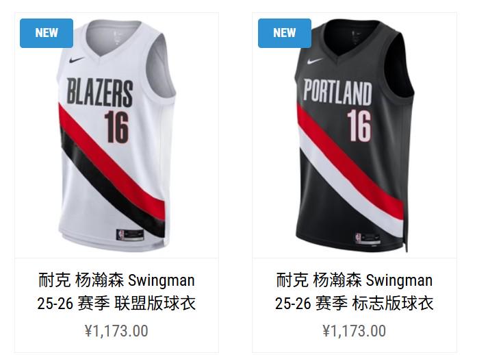 北京时间今日,开拓者官方商城上架了4款杨瀚森的球衣,其中Swingman版售价1173元人民币,Authentic版售价2063元人民币。