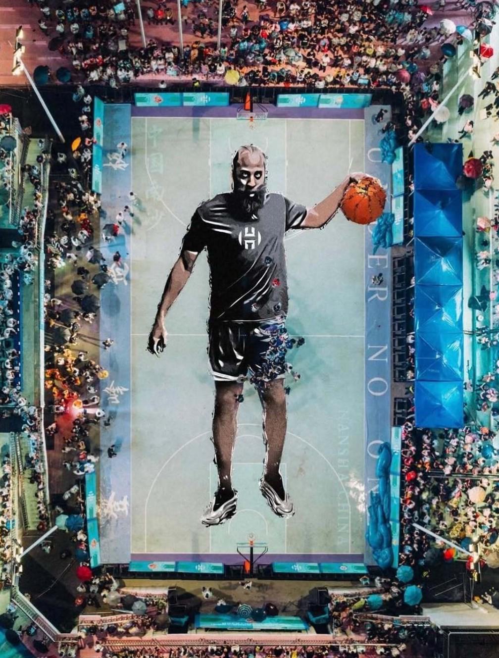 近日,快船球星詹姆斯-哈登出席了村BA活动,并揭幕了有自己巨幅画像的专属球场。