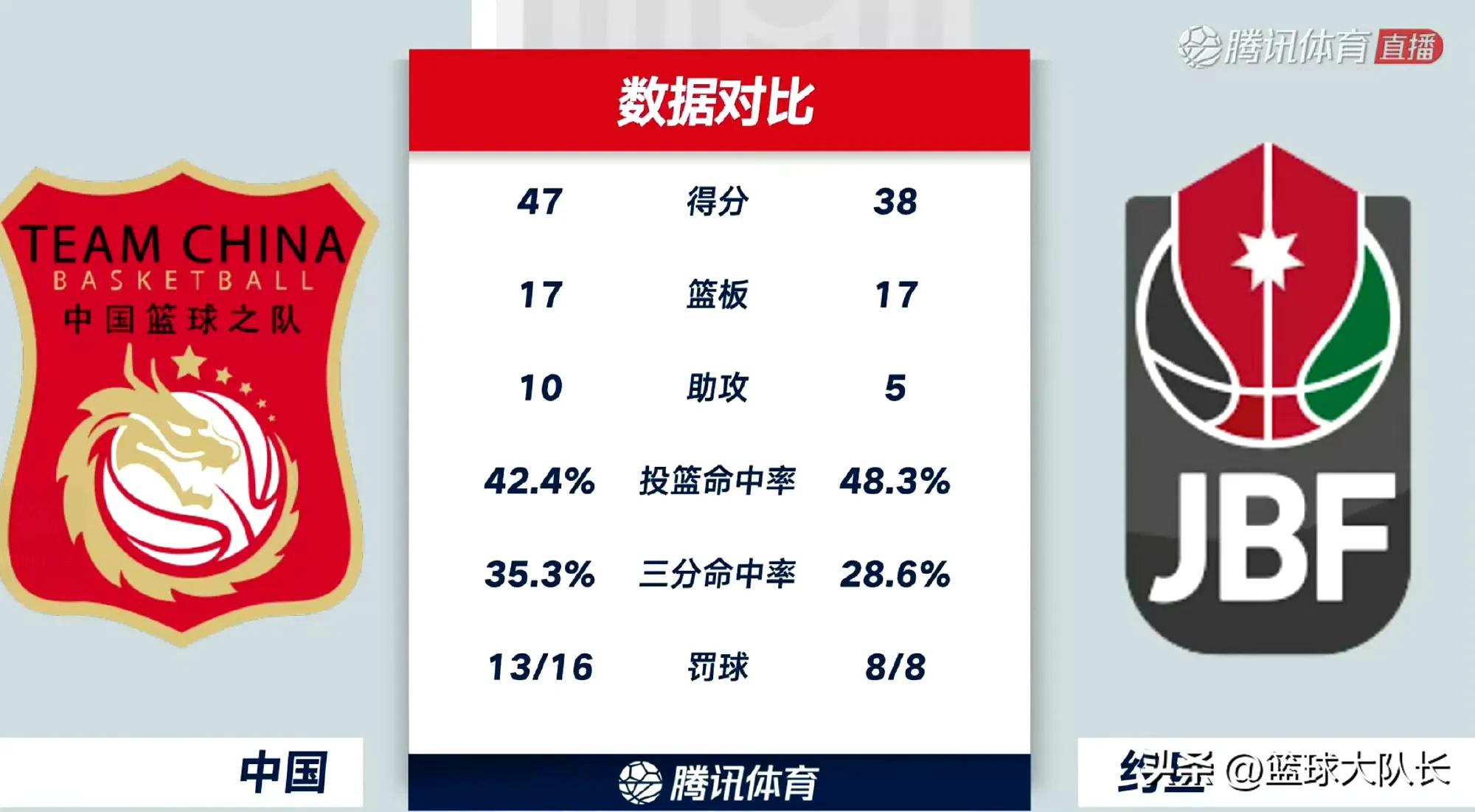 第二节比赛逐渐适应中国男篮防守的约旦男篮进攻端火力开始发力,好在中国男篮这边的外线手感没有减弱,胡明轩、王俊杰、胡金秋都能在进攻端取分,第二节比赛约旦单节24比23扳回1分,上半场结束中国男篮47比38领先约旦男篮9分。