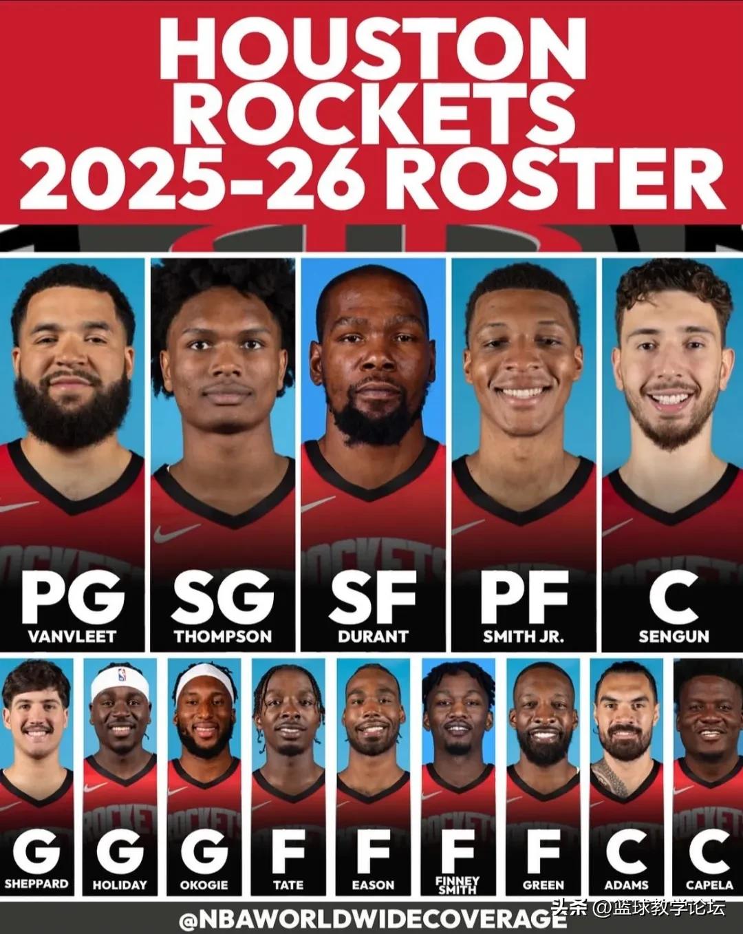 杜兰特出生于1988年9月29日,今年休赛期,火箭用杰伦-格林、狄龙-布鲁克斯、2025年首轮10号签、未来的5个次轮签,8换1交易得到杜兰特。接下来火箭又签下卡佩拉、芬尼-史密斯和奥科吉,光看纸面实力已经是西部顶级。