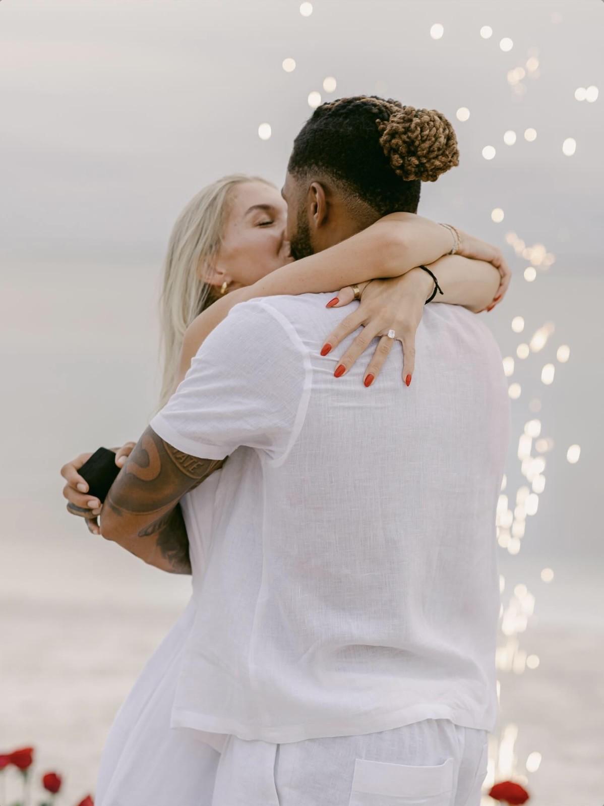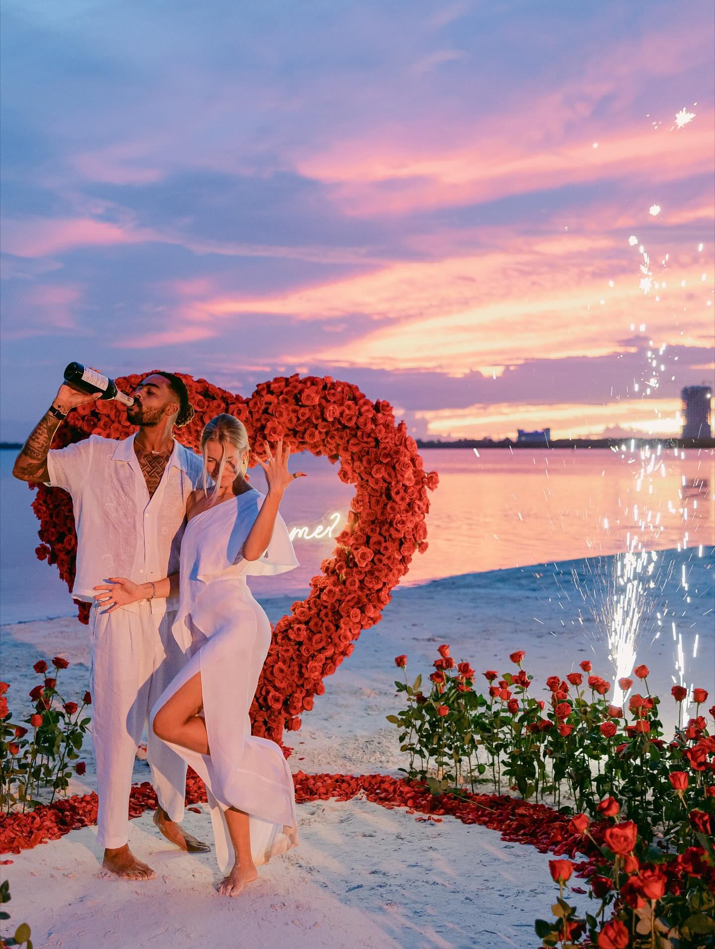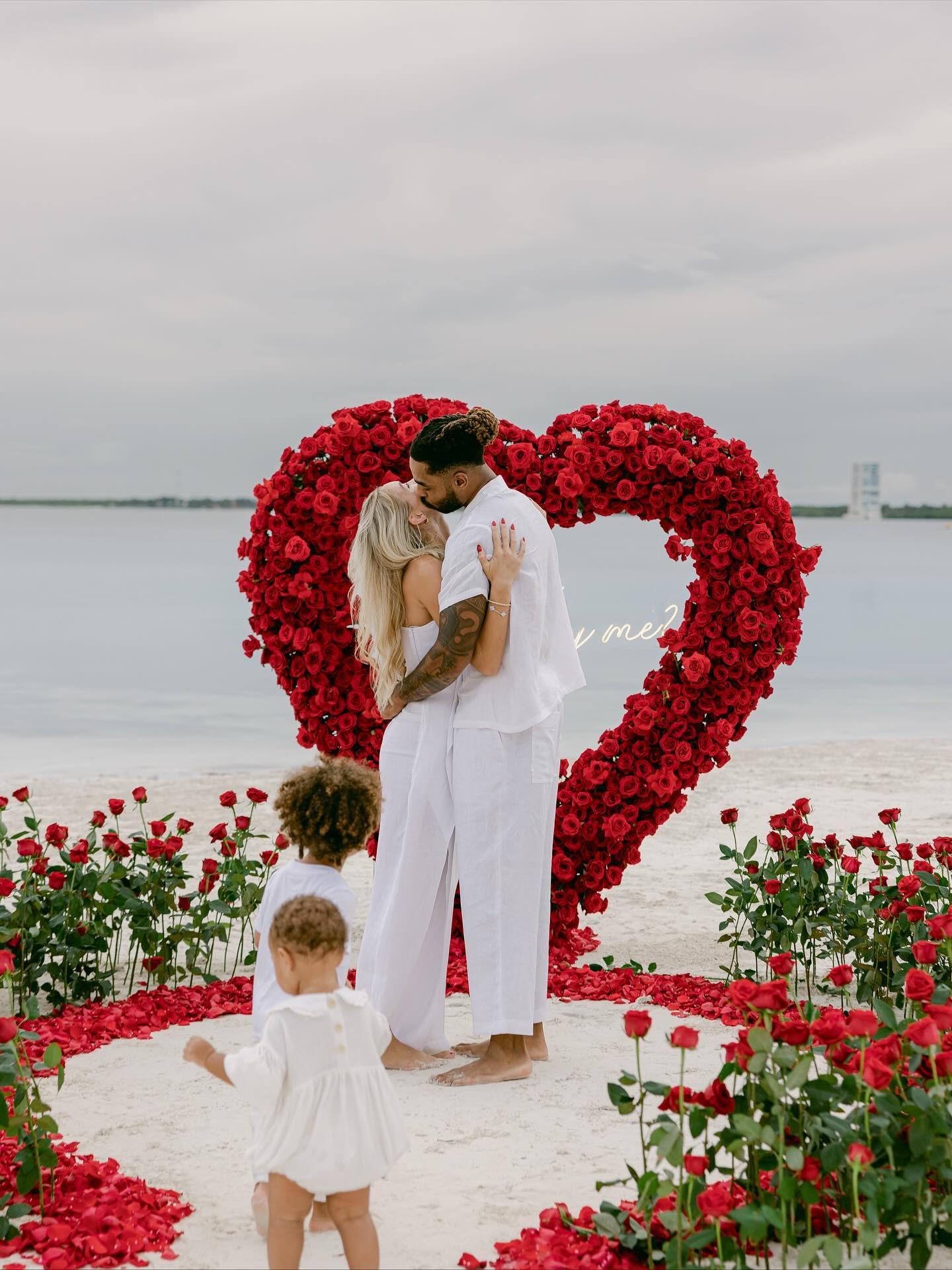 劳拉表示:从Ms(未婚女生)变成Mrs(已婚女士),并分享了多张求婚仪式的照片,通过照片可以看出,求婚现场在一个海边的沙滩,现场铺了许多玫瑰花,还有绚丽烟火加以点缀,两人亲密相拥,钻戒十分醒目,两人的两名孩子也在场见证。