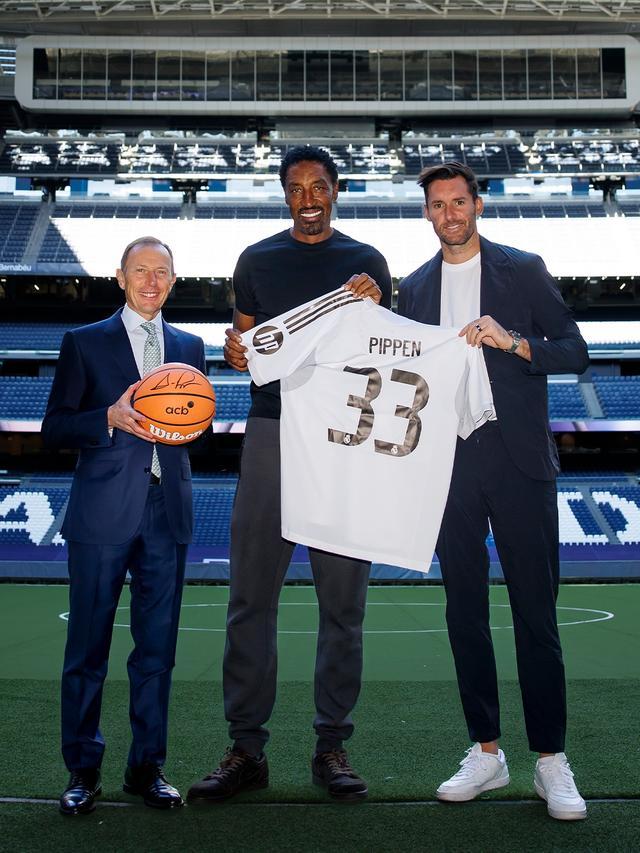 北京时间9月28日,皇家马德里官方社媒晒出照片,NBA名宿斯科蒂-皮蓬造访了伯纳乌球场。