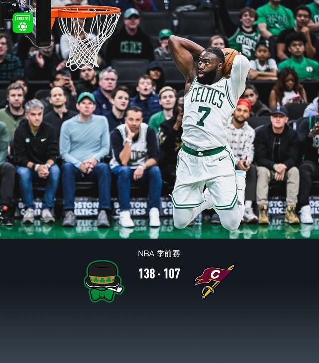 第四节凯尔特人米诺特拿下8分,骑士米勒-科普拿下7分,最终凯尔特人138-107战胜骑士