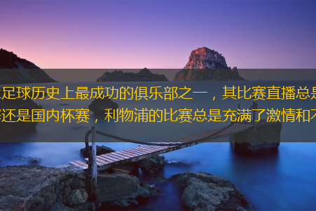 利物浦足球俱乐部成立于1892年,拥有超过130年的悠久历史。在这漫长的岁月里,利物浦经历了无数的高峰和低谷,但始终保持着对足球的热爱和追求。俱乐部的主场安菲尔德球场,被誉为“足球的圣地”,见证了无数经典比赛和传奇时刻。通过直播,球迷们可以感受到这座球场的独特魅力,仿佛置身于现场,与数万名球迷一起为球队加油助威。利物浦的历史不仅仅是关于足球,更是关于一种精神,一种永不放弃、勇往直前的精神。这种精神通过直播传递给每一位观众,激励着他们在生活中也保持同样的态度。