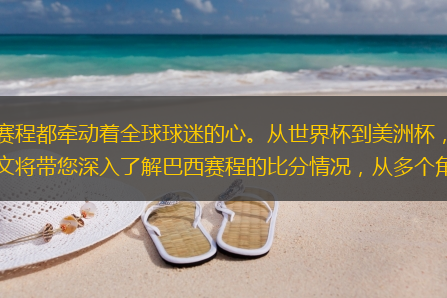 巴西队的赛程比分对全球足球赛事产生了深远的影响。从世界杯到美洲杯,巴西队的每一次表现都牵动着全球球迷的心。例如,在2002年世界杯中,巴西队的夺冠不仅让全球球迷为之沸腾,也为后续的足球赛事树立了新的标杆。而在2014年世界杯中,巴西队的惨败则引发了全球足球界的深刻反思。这些赛事影响的评估,不仅让我们看到了巴西队的强大实力,也让我们更加期待未来的赛程比分。
