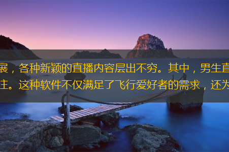 男生直播飞机软件在技术上具有显著的优势。软件采用了先进的图像处理技术,能够实时渲染出逼真的飞行场景。软件还利用了人工智能技术,能够根据用户的飞行习惯进行智能推荐,提供个性化的飞行体验。软件还支持虚拟现实(VR)技术,用户可以通过VR设备进行沉浸式飞行体验。软件还具备强大的数据处理能力,能够实时处理大量的飞行数据,确保直播的流畅性和稳定性。软件还不断进行技术更新和创新,为用户提供更多新颖的功能和体验。