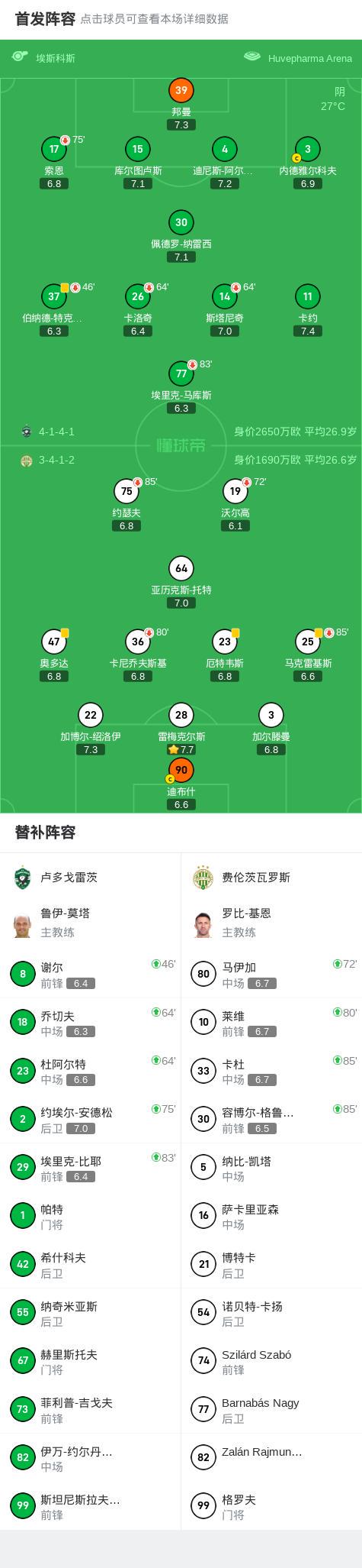 卢多戈雷茨0-0费伦茨瓦罗斯,双方破门乏术