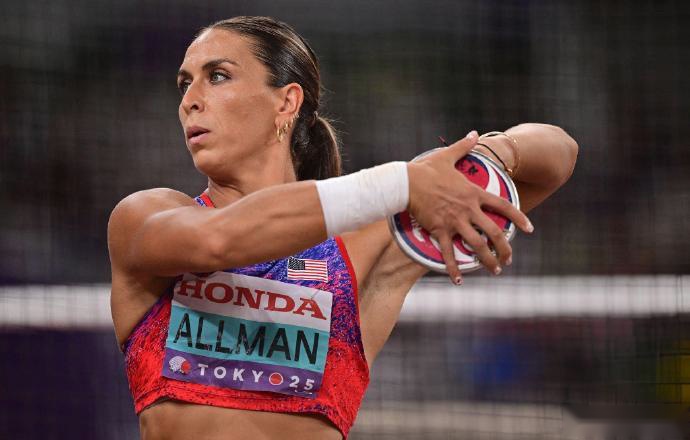 9月14日,2025年东京田径世锦赛女子铁饼决赛,两届奥运冠军、美国选手奥尔曼自第一投之后就保持领先,更是凭借第五投的69米48彻底锁定冠军。在过去两届世锦赛分获铜牌和银牌之后,她终于夺得个人世锦赛首金