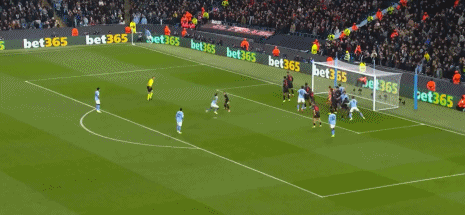 第6分钟,曼城角球造成混乱,阿克近距离射门被门将扑出