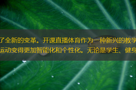 开课直播体育的最大优势在于其智能化和高效性。通过直播平台,用户可以随时随地参与课程,不再受限于固定的时间和地点。无论是清晨的瑜伽课,还是深夜的力量训练,只需一部手机或电脑,就能轻松加入。直播课程通常配备专业教练,他们不仅能实时指导动作,还能根据学员的反馈调整教学节奏,确保每个人都能跟上进度。