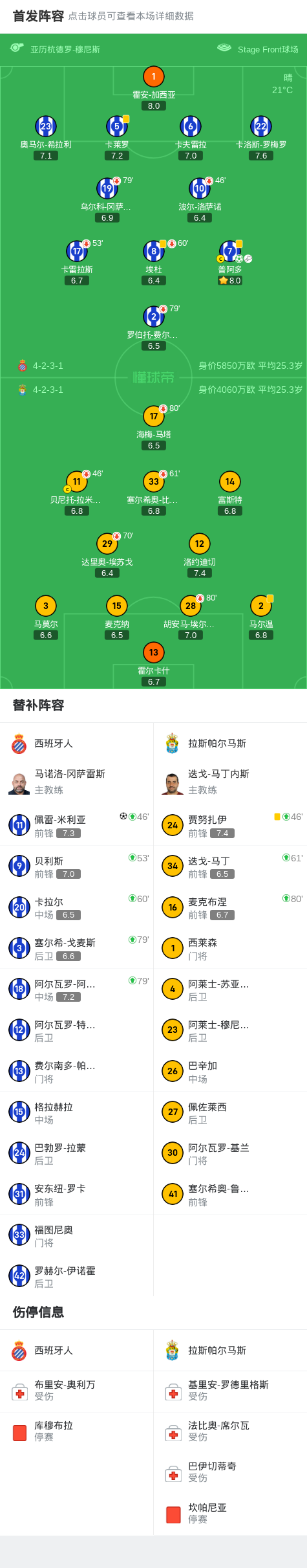 北京时间5月25日,西班牙足球甲级联赛第38轮,西班牙人主场迎战拉斯帕尔马斯。比赛中,普阿多通过点球为西班牙人打破僵局,随后他又助攻佩雷-米利亚再下一城。最终,西班牙人以2-0战胜拉斯帕尔马斯。