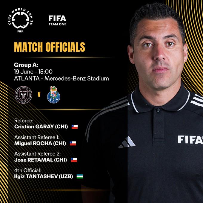 官方消息,智利裁判克里斯蒂安-加雷将执法世俱杯小组赛迈阿密国际vs波尔图。
