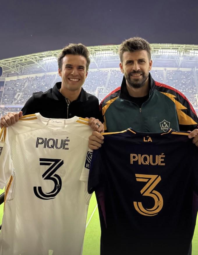 皮克参观了洛杉矶银河的主场,并收到了普伊奇赠送的两件球衣,一件白色和一件黑色。此外,他还穿着一件洛杉矶银河的卫衣。