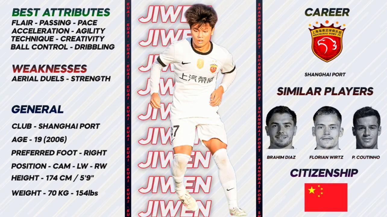 在球员介绍方面,Brazil Scout频道认为蒯纪闻现在的优点是灵活、传球、速度、加速、敏捷、技术、创造力、控球和盘带,弱点是力量和空中对抗。给到的三个模板球员分别是卜拉欣-迪亚斯、维尔茨和库蒂尼奥。