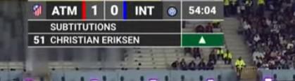比赛进行到第54分钟的时候,国米进行了一次换人,由卡奇马尔斯基换下了莱昂纳多-博沃,但转播信号中给出的被换下球员却是短暂效力过国米的意大利足球名宿博努奇,而换上的则是另一位此前曾效力过国米的球员埃里克森。