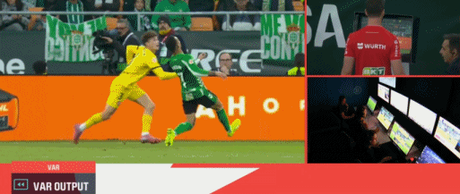 西甲第13轮,皇家贝蒂斯与赫罗纳1-1战平,补时阶段,安东尼因试图在霍埃尔-罗卡身前倒钩射门而脚踢对方脸部,被直接罚下。主裁判借助VAR确认判罚。
