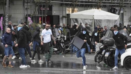 据报道,第一次冲突发生在当地时间下午5:30左右,地点是米尔维奥桥地区。拉齐奥极端球迷试图突破缓冲区,进入罗马球迷所在的区域,而罗马球迷也从台伯河对岸的曼奇尼广场临近。遭到警察的驱散后,他们开始向警察猛烈投掷物品、鞭炮等。