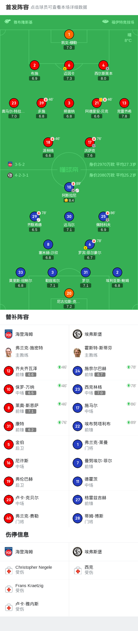 第61分钟,海登海姆球员西尔斯莱本打入一球。