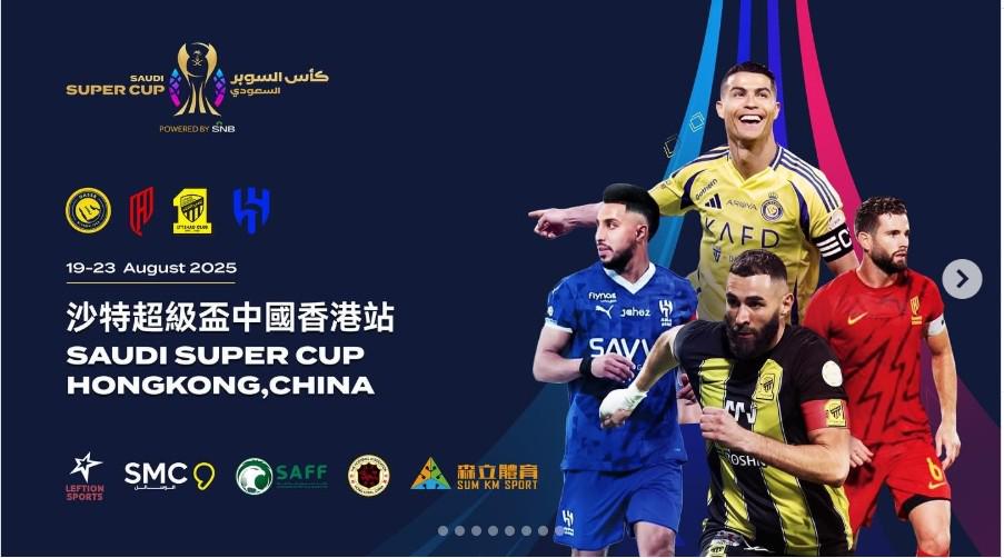 2025/26沙特超级杯将于8月19至23日在香港大球场上演,主办方在官方社交平台公布了比赛日程详情以及门票票价。且在宣传海报上,C罗和本泽马的身影占据C位。