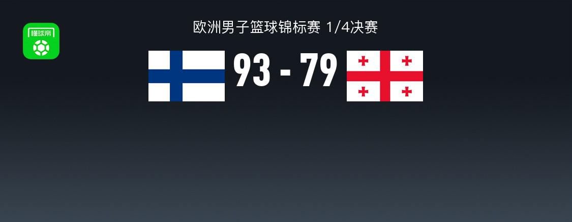 第四节芬兰男篮埃利亚斯-瓦尔托宁拿下6分,格鲁吉亚男篮马穆凯拉什维利拿下7分,最终芬兰男篮93-79战胜格鲁吉亚男篮