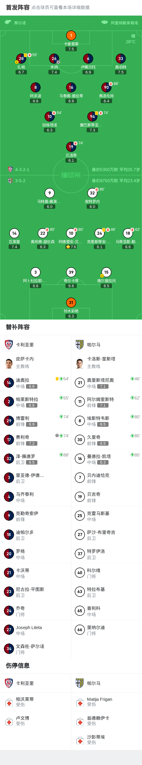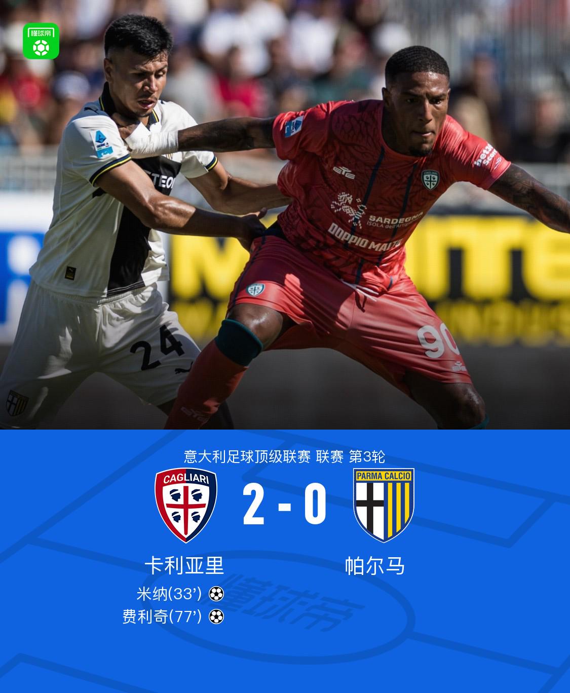 9月13日,意大利足球顶级联赛第3轮,卡利亚里坐镇主场迎战帕尔马。比赛中,卡利亚里球员米纳率先打破僵局,随后费利奇再下一城。最终,卡利亚里以2-0战胜帕尔马。