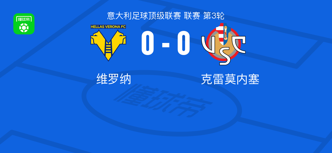 北京时间9月16日意大利足球顶级联赛 联赛 第3轮,维罗纳主场对阵克雷莫内塞。最终比分维罗纳 0