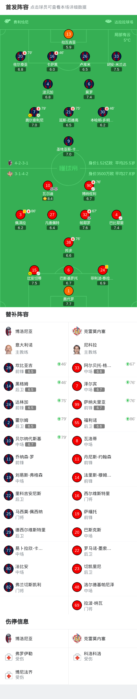 克雷莫内塞3-1博洛尼亚,瓦尔迪梅开二度,帕耶罗破门