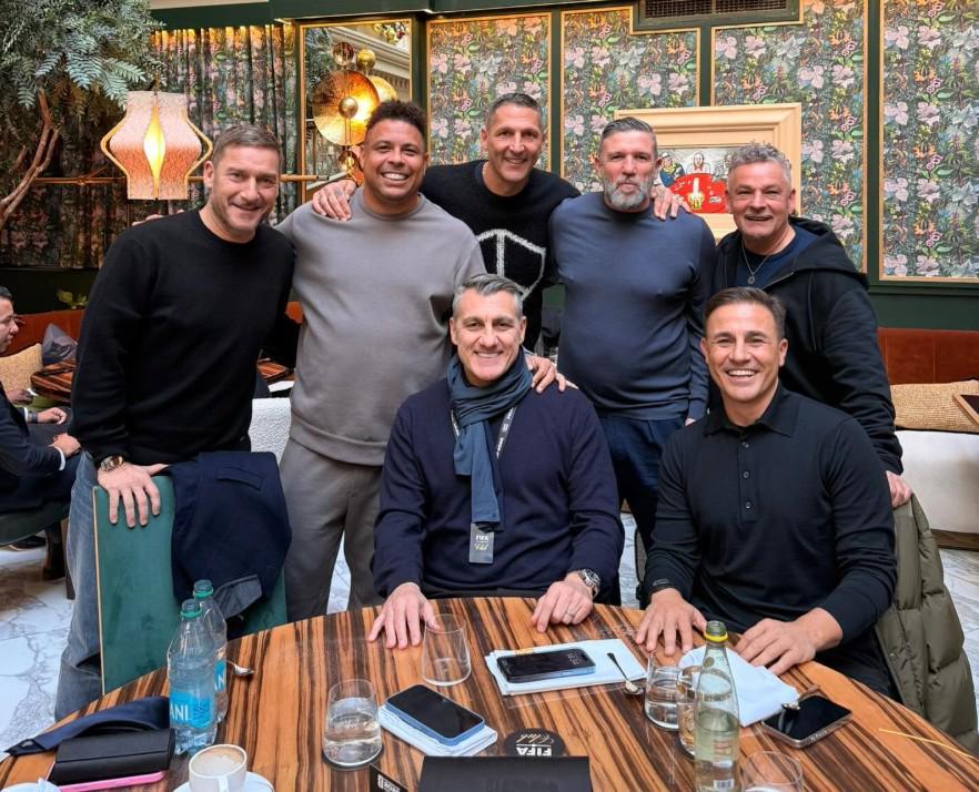 北京时间12月5日,意大利和国际米兰的传奇射手维埃里在社交媒体上晒出了自己与一众名宿的合影,其中包括了罗纳尔多、罗伯特-巴乔、托蒂以及卡纳瓦罗。