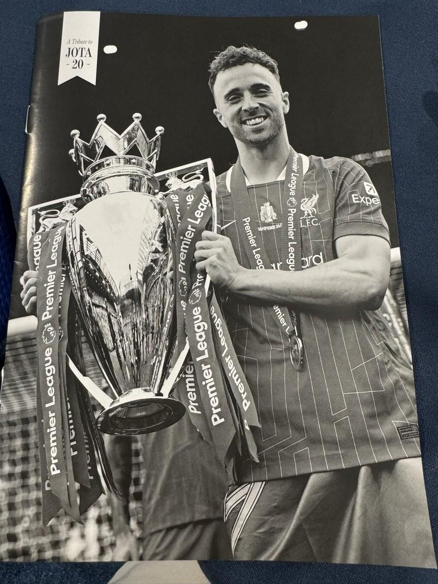 这本特殊的比赛日场刊封面是若塔与英超冠军奖杯的合照,这表达了对若塔的致敬与深切悼念,这本场刊对于双方球迷来说都是意义重大的。