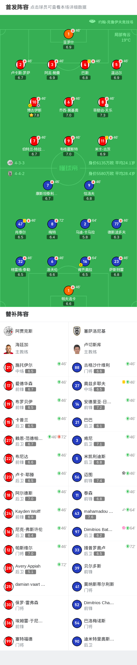 第29分钟,阿贾克斯球员菲慈佔-天乐助攻博古伊斯打入一球。